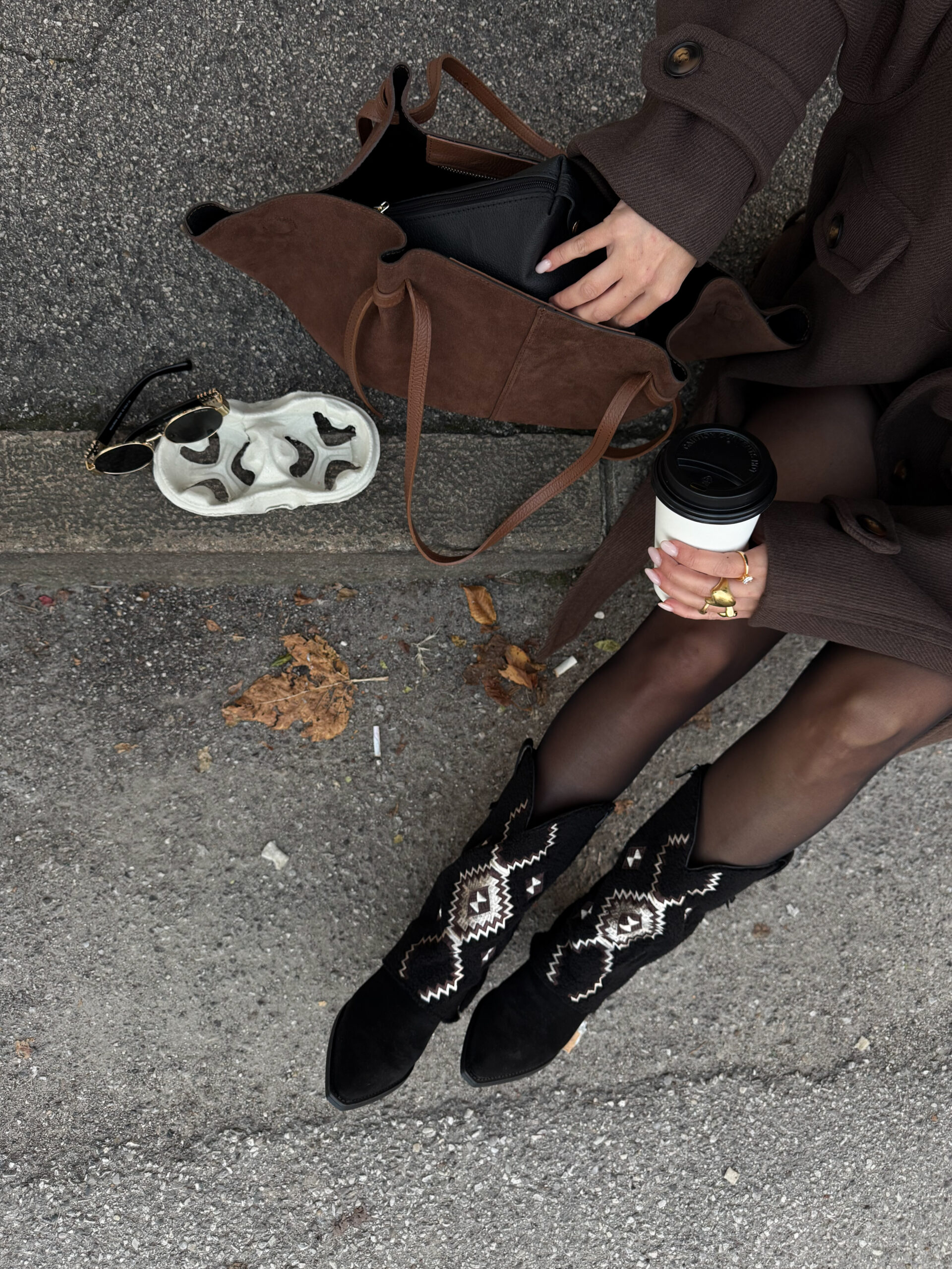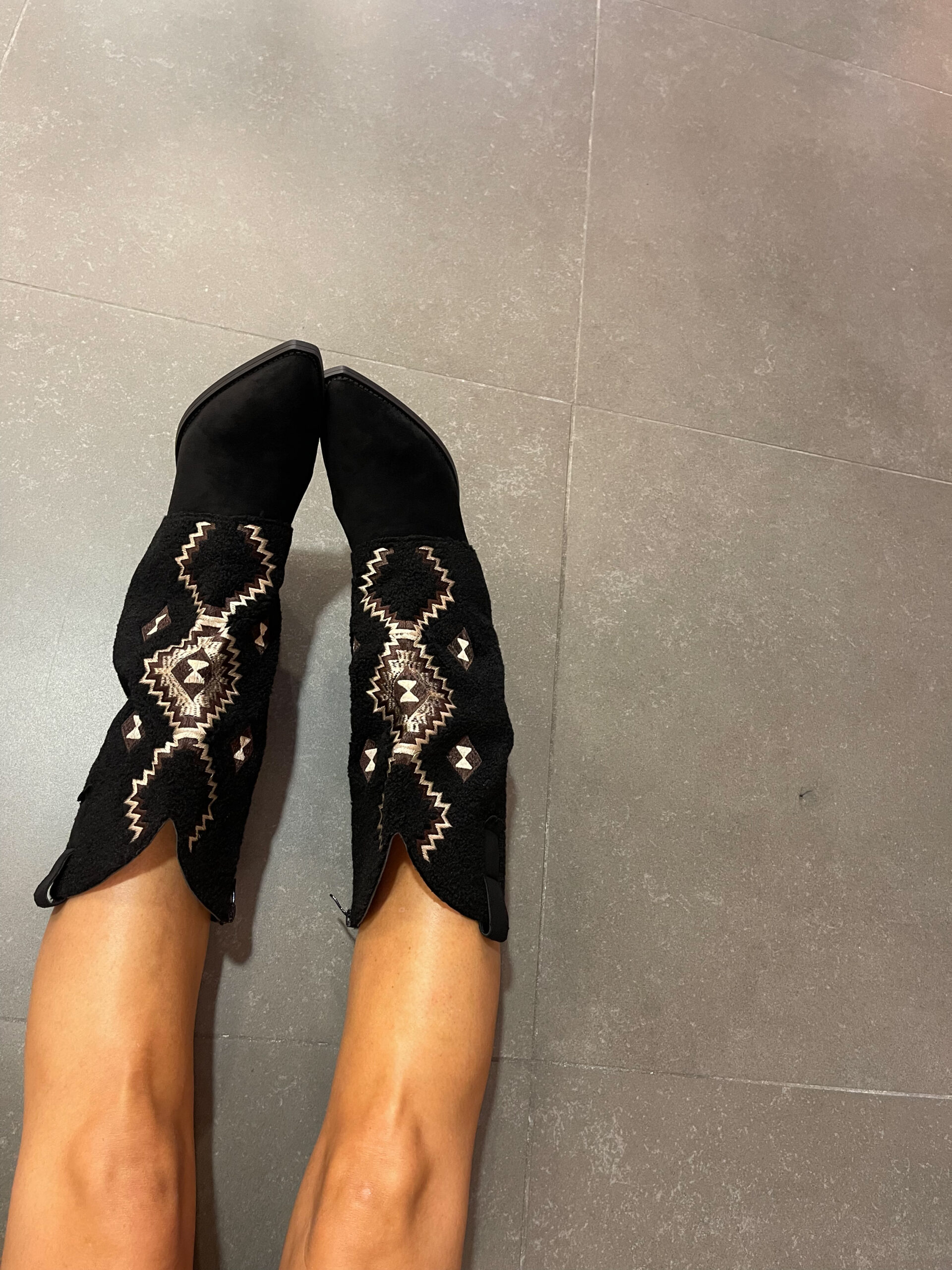 Texano nero con fantasia e tessuto Teddy