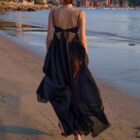 Dettaglio maxi fiocco posteriore con apertura sulla schiena.